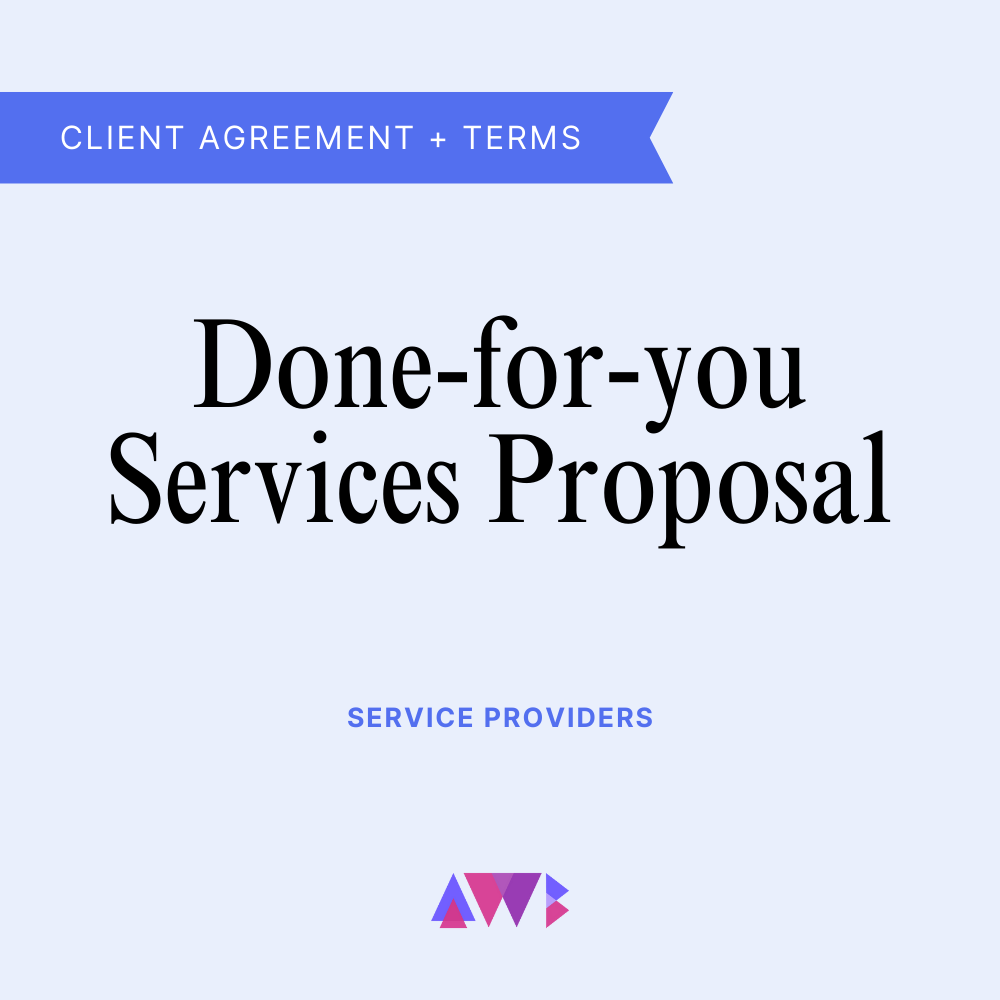 The Done-For-You Services Proposal lays out all the key terms you and your client need in order to make sure you’re on the same page when deciding whether or not to work together.