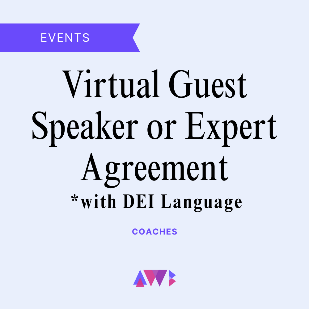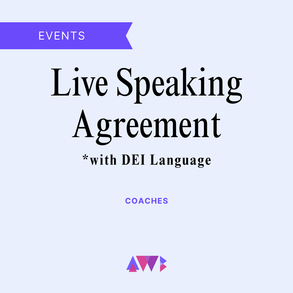 - Live Speaking Agreement: a must for any event host or professional speaker who wants to be clear about how they work, plus maintain the DEI values they hold dear.